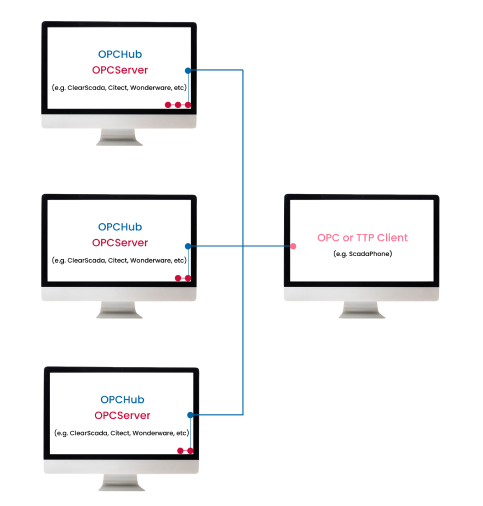 OPCHub is a Windowsbased communications application for use in conjunction with SCADA applications that support OPC-DA communications. The purpose of OPCHub is to facilitate communications between multiple OPC servers by maintaining a centralized list of tags that are obtained from an unlimited number of local or remote OPC Server applications.